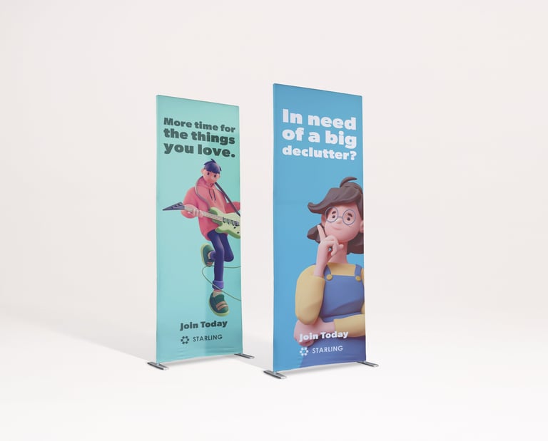 Standard banners work well in shops, receptions, or small event stands, compact, light, portable, and easy to set up. Use them by the till, outside your business, or at markets and networking events.