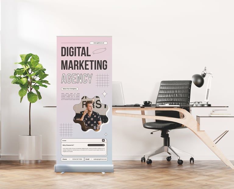If you want to make a lasting impression at exhibitions or in retail spaces, our premium roller banners deliver durability and high-end style.