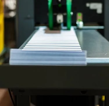 Our production-grade colour laser printers handle SRA3 stock up to 350gsm, allowing us to create everything from high volume personalised letters to self mailers, postcards and brochures with full variable data throughout.