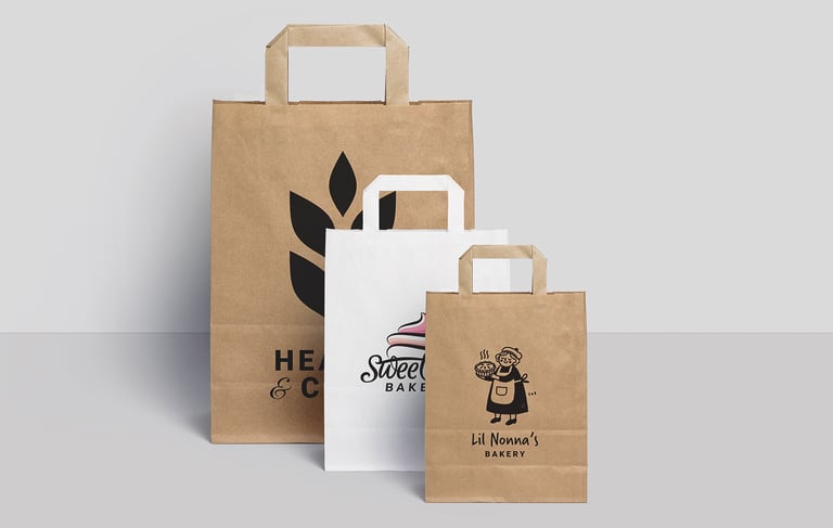 Looking for a smart, sustainable way to make your brand stand out? Our paper bags are just the ticket. Whether you run a cosy high-street boutique, sell handmade products at a local market, or craft beautifully boxed bakes, these bags are built to impress. With four sizes available, from compact to carry-it-all, and a choice of crisp white or rustic brown kraft, there’s something to suit every style.
