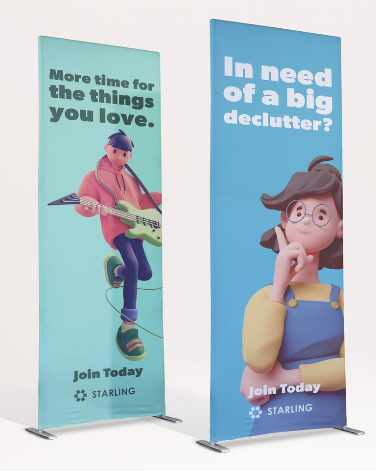 Standard banners work well in shops, receptions, or small event stands, compact, light, portable, and easy to set up. Use them by the till, outside your business, or at markets and networking events.